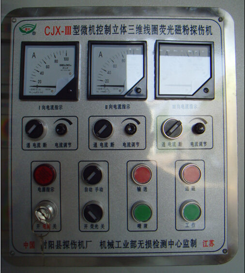 該機(jī)就是根據(jù)根據(jù)這個(gè)試驗(yàn)原理設(shè)計(jì)制造的專用檢測(cè)設(shè)備。是我廠生產(chǎn)的低電壓、交流大電流三維線圈磁化器、機(jī)電一體化型固定臥式輸送式磁粉探傷設(shè)備,適用鐵路、航空、汽車、摩托車、內(nèi)燃機(jī)等行業(yè)形狀不規(guī)則的大、中、小零件的磁粉探傷,可發(fā)現(xiàn)零件表面和近表面因鑄造、淬火、磨削、疲勞等原因形成的微小裂紋,以及夾渣等極細(xì)微缺陷。