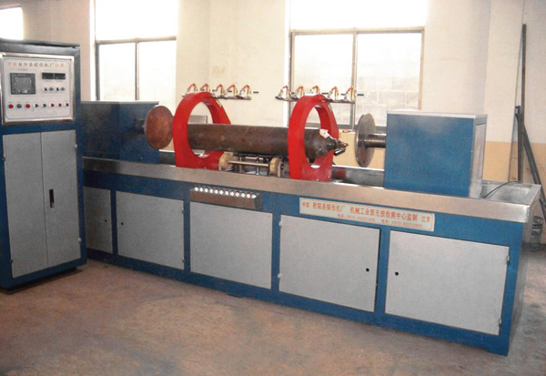 控制中心(人機(jī)界面觸摸屏操作系統(tǒng)、數(shù)字顯示) 一套 主機(jī)(包括:周、縱向變壓器、縱向磁化器、周向夾緊磁化機(jī)構(gòu)、絲桿螺母極間距調(diào)整機(jī)構(gòu)等) 一套 氣動夾緊機(jī)構(gòu) 一套 托架旋轉(zhuǎn)機(jī)構(gòu) 一套 線圈伸出機(jī)構(gòu) 二套 磁懸液噴灑回收系統(tǒng) 一套 全封閉暗室系統(tǒng) 一套 LED紫外燈系統(tǒng) 一套 二、探傷工件:鋼瓶,φ400mm,長度,1800mm。三、設(shè)備能力:探傷節(jié)拍:15--35秒/件,觀察時間除外。四、本機(jī)設(shè)計制定標(biāo)準(zhǔn):1、滿足需方現(xiàn)場和實際探傷工藝要求。2、中華人民共和國磁粉探傷機(jī)《GB3721-83》標(biāo)準(zhǔn),機(jī)械工業(yè)部行業(yè)磁粉探傷機(jī)《JB/T8290-2011》標(biāo)準(zhǔn),GB/T 15822.3-2005《無損檢測 磁粉檢測 第3部份:設(shè)備》標(biāo)準(zhǔn),CB819-75《柴油機(jī)另件磁粉探傷》標(biāo)準(zhǔn),行業(yè)《HB/Z72-98》標(biāo)準(zhǔn)。3、ISO-9001質(zhì)量體系認(rèn)證文件。五、主要技術(shù)指標(biāo):周向磁化電流AC:0—6000A(有效值)連續(xù)可調(diào),帶斷電相位控制(無漏檢)。縱向磁化磁勢AC:0—18000AT(有效值)連續(xù)可調(diào),帶斷電相控制(無漏檢)。電極間距:0—2000mm。磁化原理:通電、線圈法。磁化方式:周向磁化、縱向磁化、復(fù)合磁化三種可靈活選用。使用環(huán)境:—10℃—+40℃,相對濕度≤80%。貯存環(huán)境:溫度—20℃—60℃,相對濕度≤70%。無腐蝕性氣體粉塵和強(qiáng)力高頻電磁污染。紫外線強(qiáng)度:距工件380mm處紫外線強(qiáng)度不少于4000μW/cm2。靈敏度測試:按中華人民共和國機(jī)械行業(yè)標(biāo)準(zhǔn)JB/T6065—92《磁粉探傷用標(biāo)準(zhǔn)試片》規(guī)定,以標(biāo)準(zhǔn)2號A型試片測試,顯示清晰。電源:三相四線,380V±20%,50HZ,約200A。檢查面:工件全部表面的裂紋等缺陷。退磁:AC18000—0(有效值)衰減式自動退磁。剩磁:Br≤0.2mT。工件旋轉(zhuǎn)觀察速度:4-6rpm。磁化線圈:內(nèi)徑450mm。線圈移動方式氣缸自動伸出。氣動夾緊:夾緊行程0-100mm。線圈伸出氣缸行程0—350mm.氣源氣壓: 0.4—0.8MP。磁化電源柜尺寸:620*500*1750,夾持裝置尺寸:3200*800*1400(不包括暗室)設(shè)備重:2T六、運(yùn)行程序:手動和自動二種。自動程序為:上料-夾緊(磁化線圈前進(jìn))-噴液-磁化-(磁化線圈縮回)-轉(zhuǎn)動觀察(磁化線圈前進(jìn))-退磁-松夾 -下料,整個過程均用小型工業(yè)PC控制。自動程序可連續(xù)進(jìn)行。